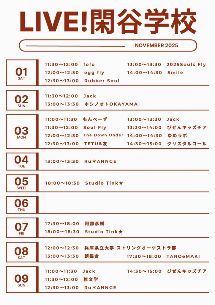 「LIVE!閑谷学校」スケジュール(改訂版2)