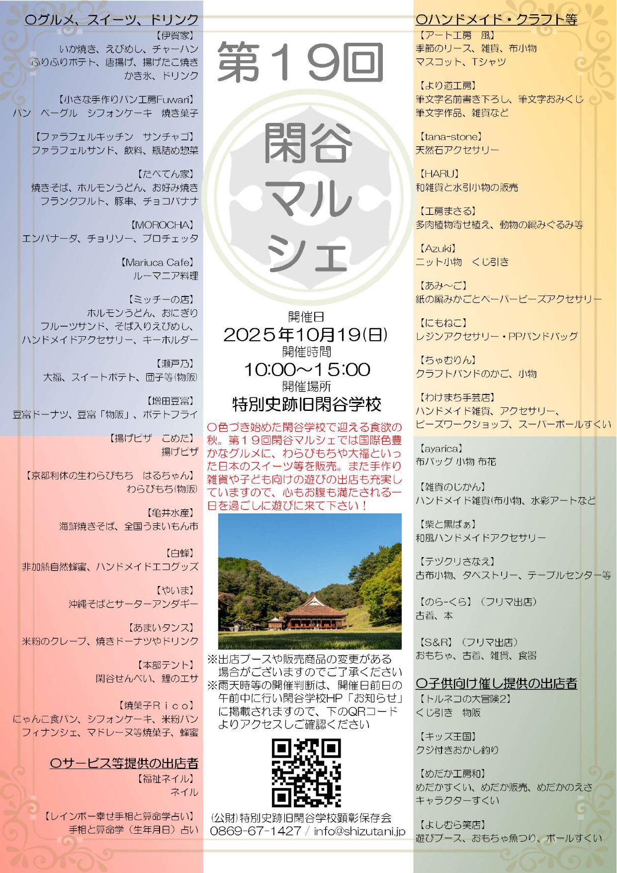 10月19日「第19回閑谷マルシェ」を予定通り開催いたします!
