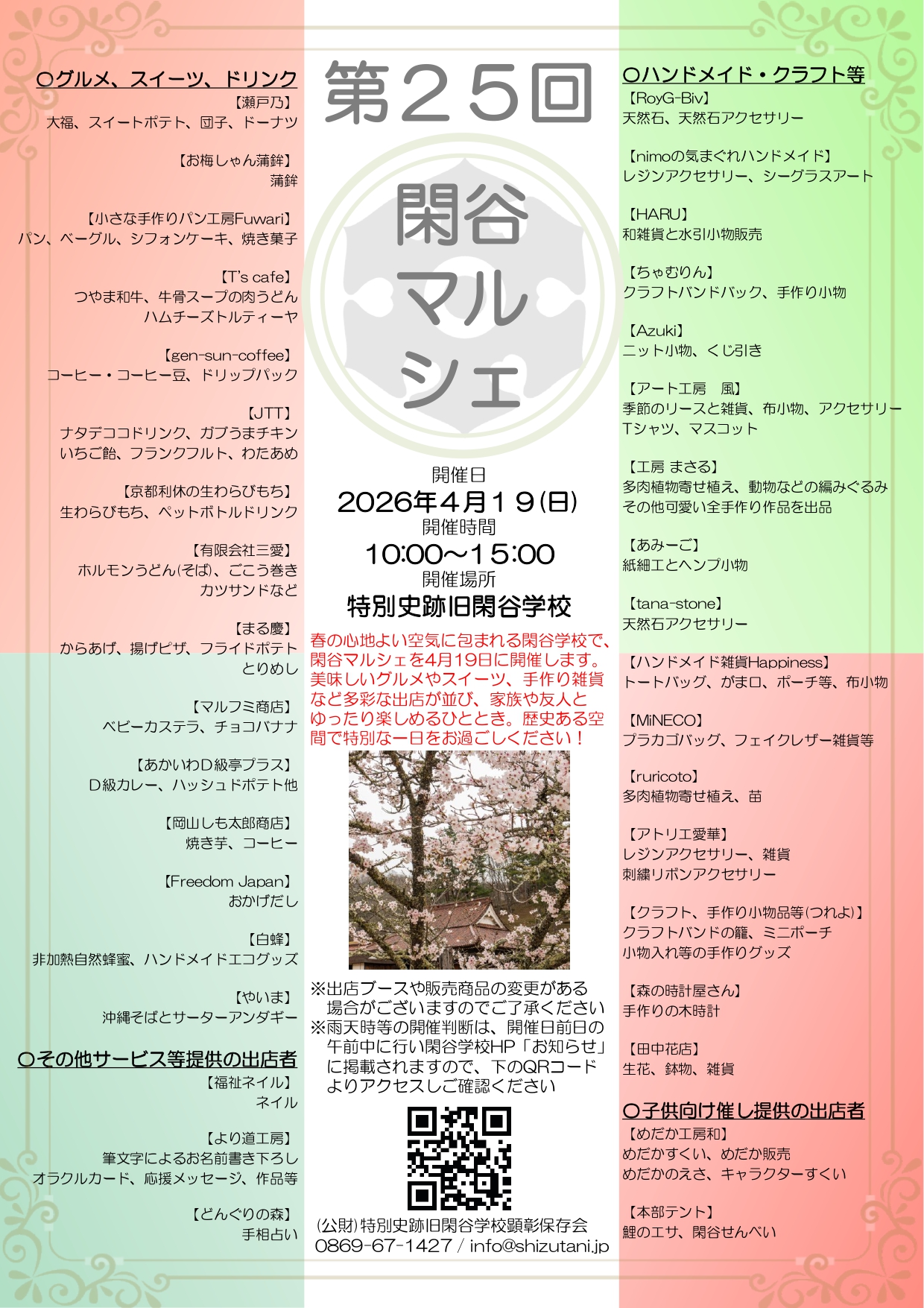 明日4月19日(日)の「第25回閑谷マルシェ」を予定通り開催することに決定いたしました!